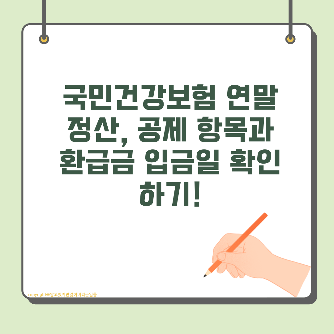 이 글에서는 국민건강보험 연말정산 공제 항목, 세액 공제를 받는 방법, 그리고 환급금 입금일을 정확하게 알려드리겠습니다.